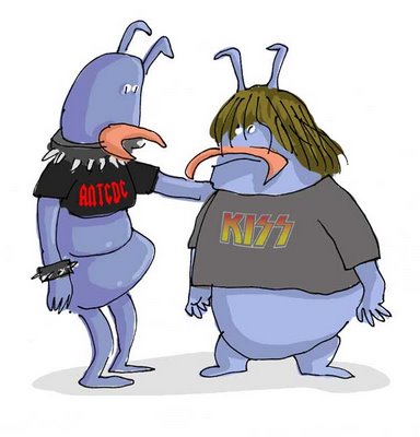 COLEGA: «Me he gastado una pasta gansa, ANTC/DC, tío. El año pasado me hice implantes de pelo estropajoso, me quite cartucheras para poder llevar pantalones piquillo y me puse 20 piercing de imperdibles para ponerme las chapas de los grupos más cañeros. Y ¿te acuerdas de mi problema de muñeca? Parece que se debe a nuestro ancestral gesto de poner los cuernos en los conciertos, así que he tenido que aprender a sacar sólo el meñique. No es lo mismo, pero es preferible a padecer de terribles dolores articulares.