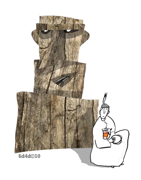 Anonymous paying (a large menu) tribute to the postmodern totem, lying in his ancestor’s totem.