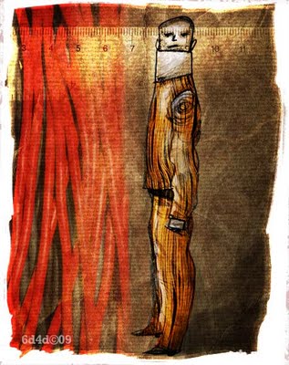 Érase una vez, hombres con cañones en la cabeza por lo que no se les caía la cara de vergüenza nunca, ni pensando que podían destruir, con sus cañones que sustituían a las narices, decenas de veces el planeta Tierra. No lloraban viendo el dolor que causaban sus armas, que vendían al mejor postor, sino que arrojaban metralla. No les incumbía la sangre, porque ellos no sangraban, pues estaban hechos de acero. Pero un día, el mundo comprendió que no se les necesitaba tanto como ellos proclamaban y la gente se olvidó de ellos y ellos se oxidaron y treparon plantas a los cañones donde deberían estar los rostros y, con el tiempo, desaparecieron entre la maleza.