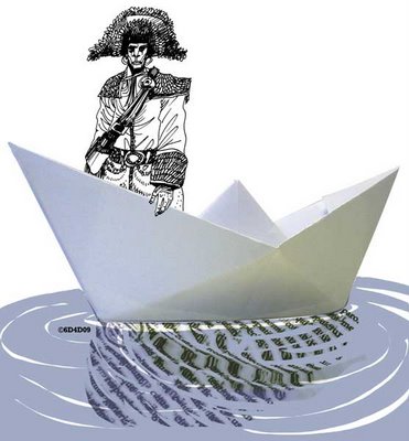 El capitán Flint, navegando sobre sus aventuras en papel. Uno de los primeros libros que leí (y que he releído en varias ocasiones, cada vez con más deleite) y una de las canciones de piratas más memorables jamás escuchadas. Cualquier niño que escuche esta tonada marinera, queda marcado de por vida y buscará siempre, su propia Isla del Tesoro. Gracias, Stevenson.