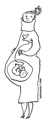 Buscando unos dibujos que, haciendo memoria, me podrían servir para un proyecto, he encontrado esta pequeña ilustración de cuando Sevein estaba embarazada de Darío. No buscaba el parecido con ella, sino representar un lazo entre la madre y el hijo que dicen que se forma durante la gestación y que, una vez se establece, no se rompe nunca. Hay explicaciones médicas a éste fenómeno que asocian a la oxitocina con el apego de la madre respecto del hijo y seguramente son ciertas, pero yo me quedo con la definición de K. Gibran: «Madre: la palabra más bella pronunciada por el ser humano» y la preciosa frase de L. Tolstoi: «El niño reconoce a la madre por la sonrisa», mucho menos científicas, pero, para mí, descubrimientos igualmente maravillosos.